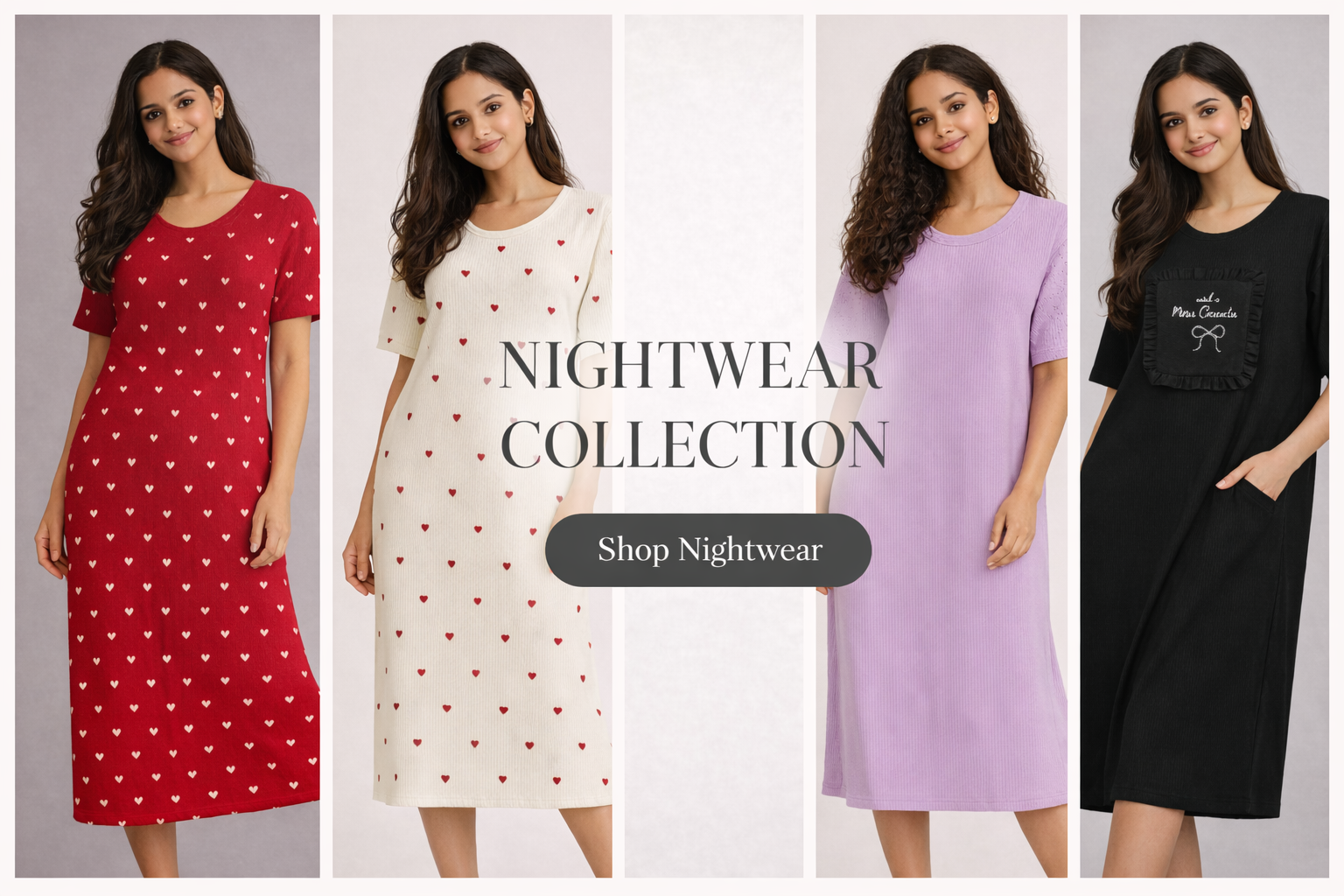 Ribbed Heart-Print Night Dress