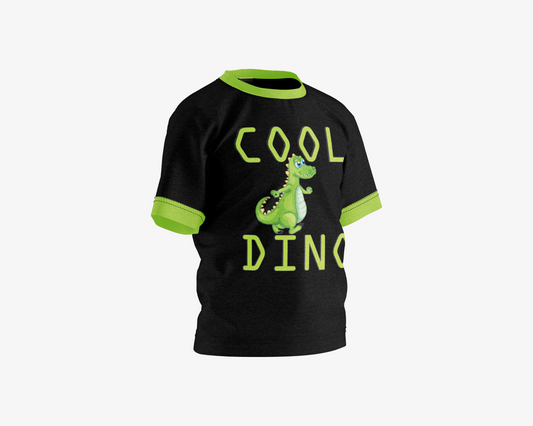 Cool DIno Black with Green Sleeves Boy's T-shirt