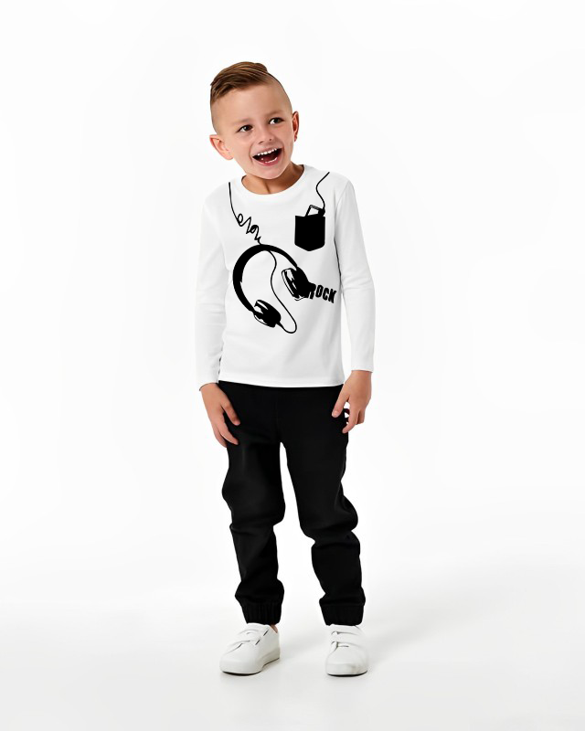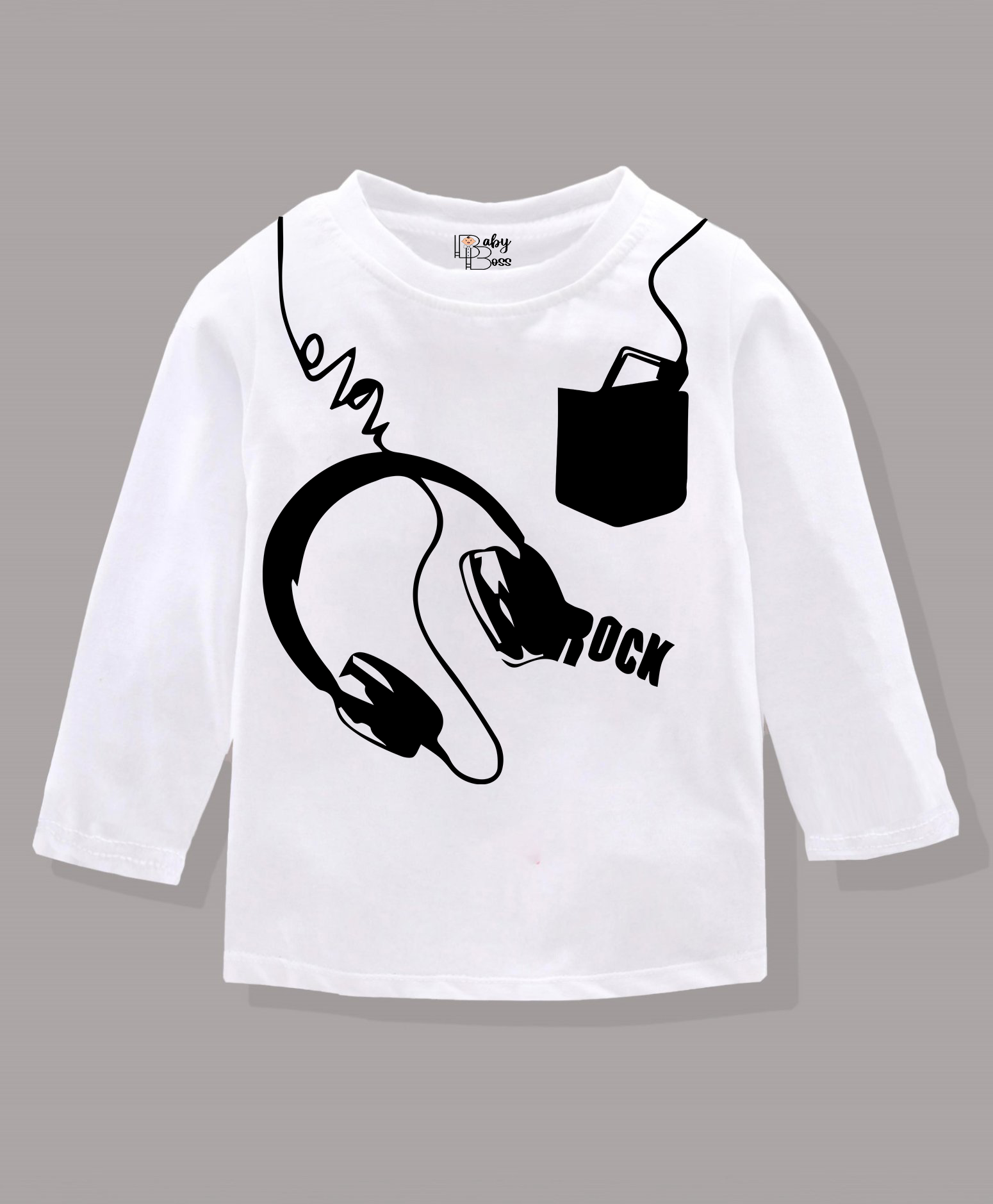 Headphone With Pocket Print White Full Sleeves Boys T-shirt