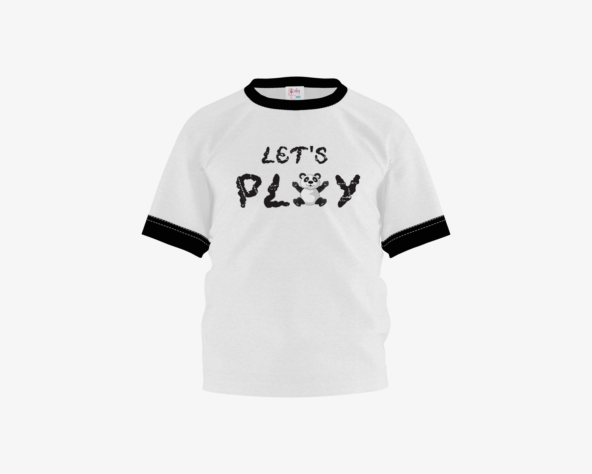 Let's Play Panda White With Black Sleeves Boy's T-shirt